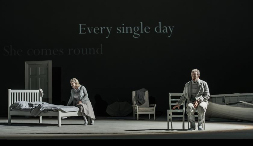 There’s none of the tawdry compromise that took the edge off busier firsts at Covent Garden like Ades’s The Tempest and Maw's Sophie's Choice; the hallucinatory experience is closer to Birtwistle's operas. Purity of intent – no spoiler here – is represented by the single line opposite the cast list in the programme, “Morgen und Abend…is the struggle of Johannes into and out of life”, and by the few chairs, bed, fishing boat, door, umbrella and trolley on Richard Hudson’s grey set.