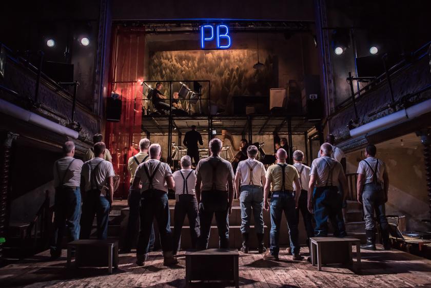 It's a waste, up to a point, of superb resources. Matthew Kofi Waldren, a deserving former beneficiary of the company's Mackerras Conducting Fellowship, is a perfect choice to draw a company together. Yet with his back to what passes for a stage and despite numerous television screens around the balconies, he can't hope to unite a scattered chorus in the spellbinding scalic passages of the Prologue or other dispersed scenes. When they come together, packed on the platform, for rebellious lumberjack Hel Helson's unwise fight with the unseen patriarch of the woodsmen Bunyan – a pre-recorded Simon Russell Beale, slightly under-inflected and unintegrated in the action – and lament in greatly exaggerated rumours of his death, a prophecy of a similar moment in Albert Herring, it's ENO spirit at its best. The beautiful nocturne with bull-frogs and whipporwill which Britten composed as an alternative Act One curtain in 1974, adding a dash of the sleep music from his intervening score for A Midsummer Night's Dream, at last allows the ENO Orchestra to come aurally forward, as it were.