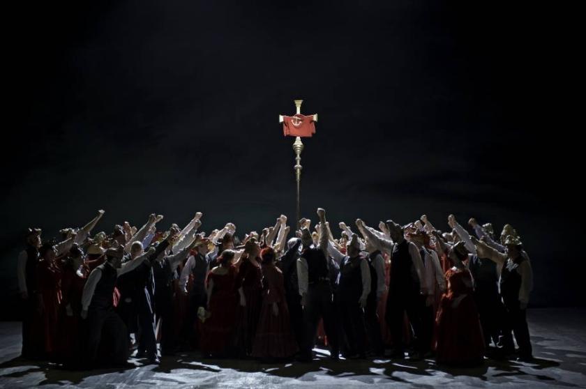 It’s the oldest coup de théâtre in the postmodernist playbook – the curtain rises to reveal an audience staring back at us – but still, in the opening seconds of Willy Decker’s Peter Grimes, one of the most effective. Our theatrical doubles here are sinister creatures indeed, massed rows of sombre Victorians whose brutal Christianity is no less severe than the angles of John Macfarlane’s set. As gazes meet across the courtroom in that moment we confront ourselves, discover ourselves in the folk of the Borough, implicated absolutely in their tragedy.