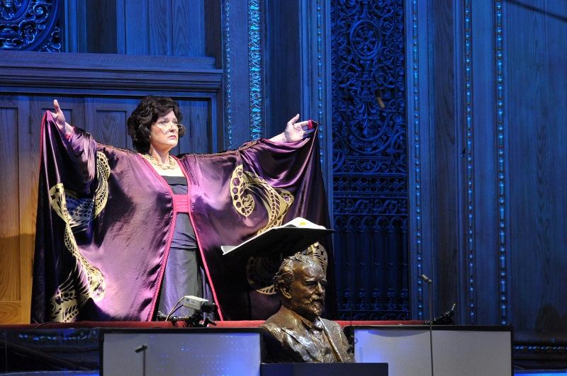 Formally attired, slow of gait on the auditorium steps, David Soar and Madeleine Shaw’s He-Ancient and She-Ancient looked for all the world like BAFTA presenters arriving onstage to present an award. Only Catherine Wyn-Jones, as soothsaying Madame Sosostris, really created a dramatic stir, first singing unseen from the gallery, then flinging arms wide by the distant organ. Luckily, no attempt was made to simulate the hero and heroine’s clinching copulation session while enveloped in lotus petals.