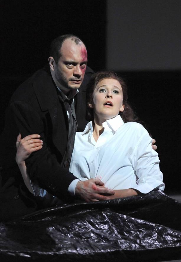 Casting both of the opera’s outcasts, court jester Rigoletto (Damiano Salerno) and wronged father Monterone, as Jews (Orthodox hair curls and a skull cap proclaim Monterone’s Orthodoxy, while a menorah dominates Rigoletto’s mantelpiece) underlines their separateness, but if there was a subtler point to be made about the particular milieu of 1950s LA then I missed it. Coming on top of Rigoletto’s deformity (here a livid birthmark covering his face) which already sets him visually apart, the issue of religion seemed to cloud the politics of a tale whose impact comes from its simplicity.