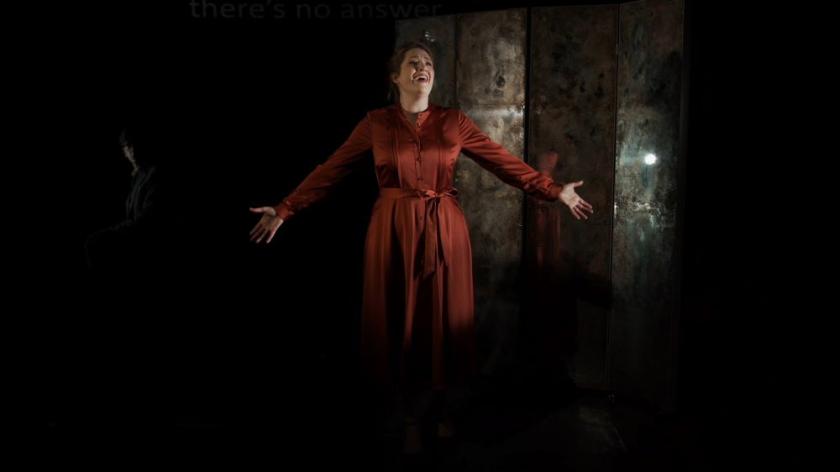 Throughout it all, Sergey Rybin at the piano played with wry understatement: a presence beyond this nightmare world, represented visually by the soprano Jenny Stafford, who hovered just out of sight in the surrounding gloom. As Hawkins disappeared into the twilight, she stepped in front of the mirror to perform Britten’s songs with luminous warmth riven by flashes of cold, fierce strangeness: never more so than in the birdlike cries of The Nightingale and the Rose. The direction was less overt here, even as the music grew more demonstrative; a masterly balancing act by Conway, and a concentrated performance by Stafford, whose expressions (both vocal and facial) never left you sure whether the poetic spirit she embodied was malevolent, consoling or even wholly real.