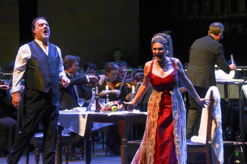 There’s a good deal to be said for semi-staged opera. It concentrates the mind in a particular way; it brings the orchestra more fully into the action; it moves the singers closer to the audience; and above all it reduces – even removes – the power of the director to superimpose some crackpot notion of his or her own on the dramaturgic design of the composer and librettist. Tosca, a work that in any case hardly lends itself to updating or relocation (though that hasn’t always stopped that happening), does on the other hand call for expert stage direction; and this is doubly the case with the singers confined to a narrow strip between the orchestra and the footlights.