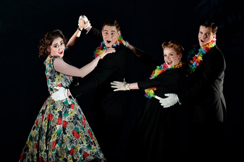 It’s a clever decision to pair Lennox Berkeley’s A Dinner Engagement with Leonard Bernstein’s Trouble in Tahiti. The first is all about happily-ever-after, while the second is all about what happens next. The optimistic grime and smog of 1950s London gives way to the shrink-wrapped brightness and professional happiness of the suburban American dream, smiles freeze into toothpaste-commercial grins and love curdles into quiet domestic despair.