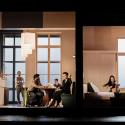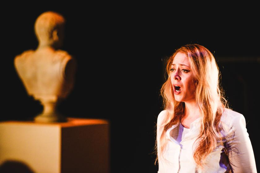 Accompanied only by a string quartet (the admirable Mavron Quartet, two of its members pictured above) and a small museum of busts, Forbes wanders the stage from wife to wife starting, mysteriously, with Red Riding Hood, then proceeding via Mrs Pontius Pilate, Mrs Aesop (a sort of mundane Mrs Haydn: “I could barely keep awake as the story droned on”), Herodias and Salome, Mrs Icarus – condemned, like so many wives, to watch her husband make a prize idiot of himself – Mrs Freud, and on via Anne Hathaway and Mrs Beast (of Beauty fame), to the ultimate abandoned wife, Demeter, the umpteenth Mrs Zeus.