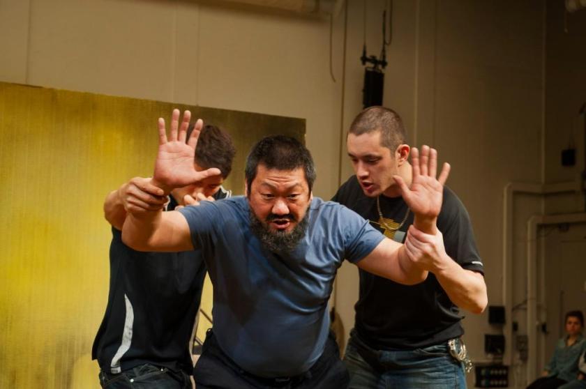 The interrogation scenes do not have the intensity of, say, a verbatim tribunal. Although there is the considerable tension of a story still dangerous, still unfinished, the overall effect is matter-of-fact, deliberately kept low key by James Macdonald's direction which requires all the cast to be onstage throughout, assembling sets as needed. Ashley Martin Davis's design has a cube at its centre made of scenery flats which open out to reveal cells. The effect is of a series of installations featuring Ai Weiwei's story; for once this artist, known for commenting on the world beyond the individual, is himself at the heart of his art. Benedict Wong inhabits him - his courage, his circumspection, his unfettered imagination - so completely that it is hard not to believe one has been in the company of the man himself.