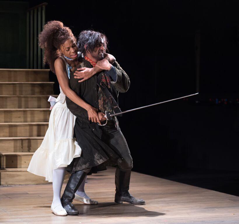 It’s the stuff of pantomime, and Godwin decides to play it as such, balancing the play’s strange sincerity with a riot of music, dance, song and silliness that takes flight against the neutral traditionals of Lizzie Clachan’s design. The performances are what matter here, propelled by the pulsing rhythms of Michael Bruce’s gloriously anachronistic folk score, performed live by a crack band of musicians who appear helpfully centre-stage every time a character threatens to break into song (even bringing out an accordion for Count Bellair’s French balladry). A final jig of rare energy rivals the Globe’s finest.