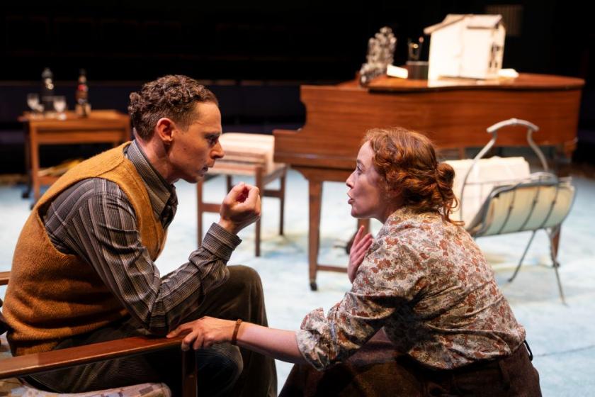The dynamics between two strong and complex people, even if they're hardly the real-life pair, make for edge-of-seat drama: the endless quarrels and reconciliations, the (again fictionalised) will-they-won't they-get-there of the work. Imo's reminder of what's good, even great, about Gloriana which will stand the test of time despite the cold reception of the "stuffed pigs" at the gala is moving; so is the end, when she pushes the composer to his most concentrated masterpiece, The Turn of the Screw, in pleasing symmetry; at the beginning of the play she arrives clutching Lytton Strachey's Elizabeth and Essex; just before the conclusion, she starts reading from Henry James's troubling novella.