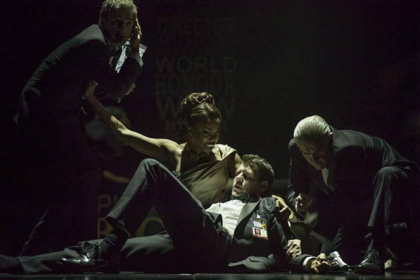 The two might continue indefinitely on their jointly antagonistic path were anxiety not building about the looming presence of an assassin (played by a mostly mute Mark Letheren) who on this evidence has a thing for sequins and a knack for infiltrating heavily secured awards jamborees. Indeed, quite how this gunman ends up crashing the Oscars and brandishing a weapon in full view is anyone's guess, credibility evidently not of paramount importance.