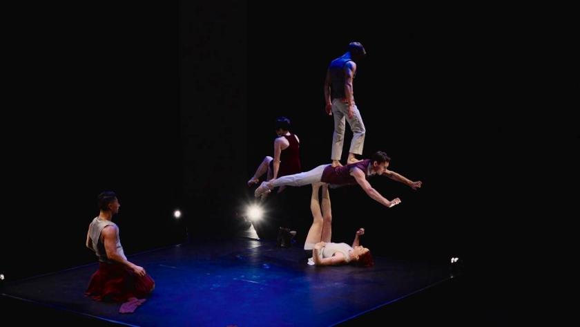 Driftwood begins under a regular domestic, drum-style lamp shade, lowered from the heavens, which the ensemble throng under, moving in a circle, gripping one another, like human waves. Throughout 70 minutes of intense, acrobatic physicality, multiple types of skill are shown. An early highlight comes when one member is held between two and used as a skipping rope for another, while there's also a lovely sequence of hoop play, 15 feet off the ground, intricate and thrillingly dangerous-looking, to the gentle soundtrack of Gotye’s ballad “Heart’s a Mess”.