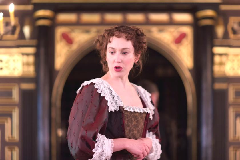 That wit is what truly distinguishes this strange experience. The bizarre plot wherein an unwanted suitor and a maidservant are horribly dispatched and lunatics mocked could be more genuinely disturbing in a gritty update, but this fine ensemble of actors in period costume really knows how to twist the humorous knife. Claire van Kampen’s very substantial introduction for string quartet, excellent throughout, successfully pastiches Shostakovich – for entr’actes we get more hint of 17th century manners gone awry – and leads to a plunge into darkness, a lighting of candles: a hint of possible horrors to come. But what do we get? In the first scene, a poetic merchant falling romantically in love with an attractive woman named after Dante’s muse, and even when desires quickly unravel, the intimate space inclines more to laughs from the virtuoso acting than to evocation of the hideous degradation the incidents might suggest.