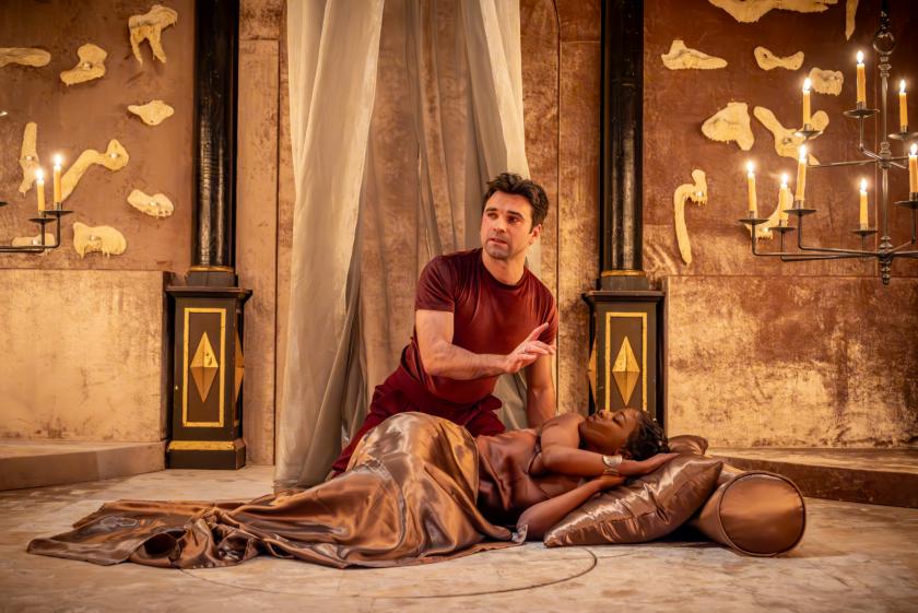 Much of the main plot turns on the relationships between the three central characters, in this version a trio of women. Gabrielle Brooks (pictured above with Nadi Kemp-Sayfi) gives the distraught Innogen a steely determination and a wit that is never fooled for long. She may be wholly unconvincing when in male garb (though that’s half the point, Shakespeare going a bit Carry-On as he was wont to do - he would have enjoyed seeing Babs Windsor in the role I suspect) but her passion is strong and we’re completely with her when her just deserts arrive just in time.