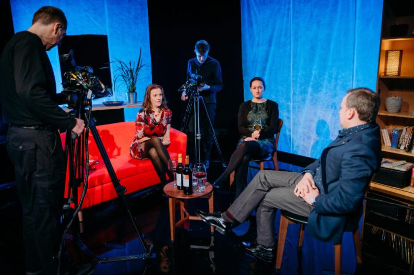 It’s a bold, sometimes brutal work, often bleakly funny in its alienating ironies and its references to French flags of solidarity on Facebook and fluffy cat gifs, yet thoroughly discomfiting in the way it holds a mirror up to the audience’s own (relatively) affluent, cushioned sensibilities – an effect heightened by the all-too-familiar IKEA bookcase and comfy sofa in Kai Fischer’s expertly designed living room-cum-TV studio of a set.