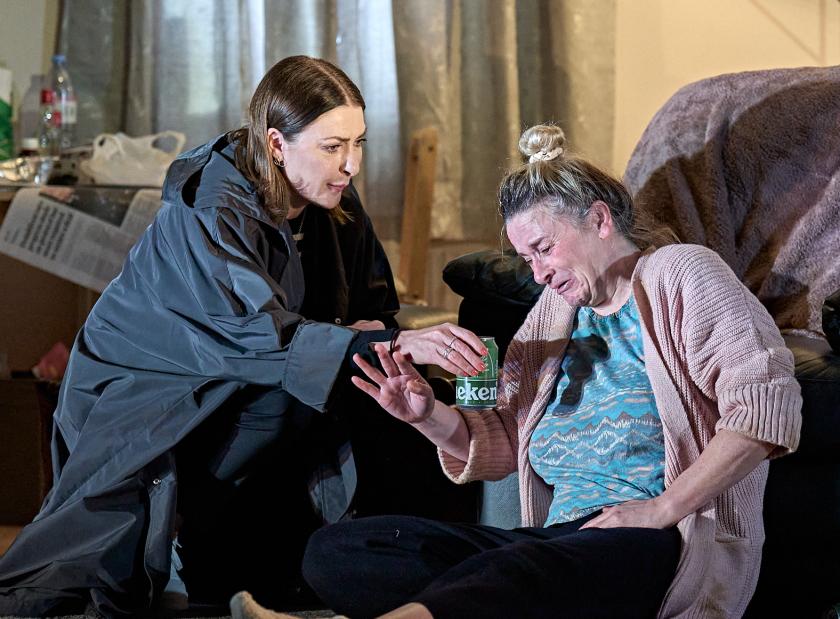 A lot clearly is riding on this stint at the clinic. Claire sees it, predictably, as Chrissy’s chance for turning her life around and saving her house (whose mortgage Claire and her husband pay: an inherent threat is there, but it's not clear whether this is said purely to frighten Chrissy into rehab). But Claire has her own dog in this game too, as becomes clear as the confessions flow. One stated reason she wants Chrissy to succeed at rehab is so she won’t feel guilty about her any more. In a moment of some bathos, she reveals that this will cement her own life plan to go to the Open University. Our sympathy for Chrissy grows as we see she may be wheedling and manipulative, but she's no hypocrite. Her final confession is truly poignant.