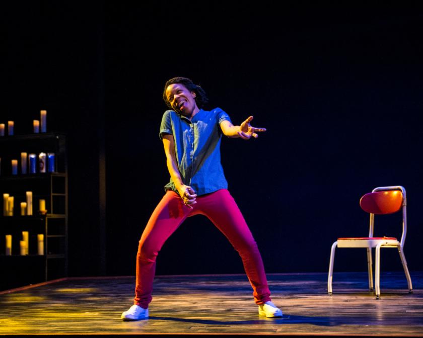 Marc is a small-time, soft-hearted drug dealer in Cardiff who grows cannabis in a greenhouse behind fake tomato plants. He aims to clear his dad’s £6,000 debt with local loan shark Oggy, but then runs into the object of his unrequited schoolboy affections. Covering murder, family secrets and even a talking seal, Alan Harris’s hectic solo show, staged by Welsh company Dirty Protest, seems to share Box Clever’s desire to find high comedy in even the darkest of situations. Harris’s jokes are far broader and more immediate, however – and they come thick and fast, too. But what really drives the show relentlessly forward is the astonishing, crackling energy of actor Alex Griffin-Griffiths (pictured above), who darts across Roundabout’s small stage restlessly and bombards us with his seemingly unfiltered thoughts as the damaged Marc, all accelerating towards some kind of warped epiphany – even if the show’s ending feels a bit too convenient. Nevertheless, Sugar Baby is a thoroughly entertaining, provocative hour of theatre.