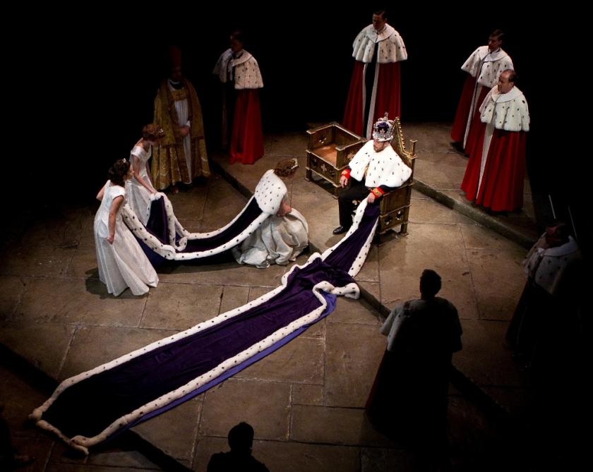 The play is all about personal passion, human weakness and fatal endings. As the long subtitle declares, it tells the tale of "The Troublesome Reign of Edward II, King of England, and the Lamentable Death of Proud Mortimer". The trouble with updating, of course, is dealing with those quaint old customs of noble banishment, royal imprisonment and murderous executions. I know, I know, the play’s the thing and Frow’s version, though flawed, is faithful to the inexorable drive of Marlowe’s work, first produced around 1593, even if set around 1953. However anachronistically, the young Edward III (an impressive cameo debut by 13-year-old Jonah Rzeskiewicz) is finally presented with Mortimer’s severed head in a bloody bag. But there are inconsistencies. We get a formal robed coronation for Edward II, but his son’s enthronement is heard on a portable radio by two old men sitting at the roadside eating fish and chips out of paper. There is a risible moment when truncheon-toting bobbies in ill-fitting helmets chase the earls and Gaveston around rather in the style of the Keystone Cops.