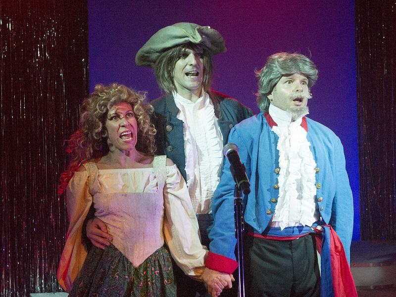 Dann’s shining moments for me were as a mad mute accordion (and recorder) player in the unforgiving take-off of Once where splendid Ben Lewis’s leading man sent up a prayer for all actors who end up playing their own instruments and Anna-Jane Casey’s Eastern European heroine quickly arrived at the inevitable conclusion that this show had a lot in common with her vacuum cleaner: “It suck.” Casey had lots of great moments, ranging from Frankie Valli to an inspired Liza Minnelli where her vibrato was wider than the Thames at its widest point and the windmill arm could power the West End. But the point is it takes a star to parody one.