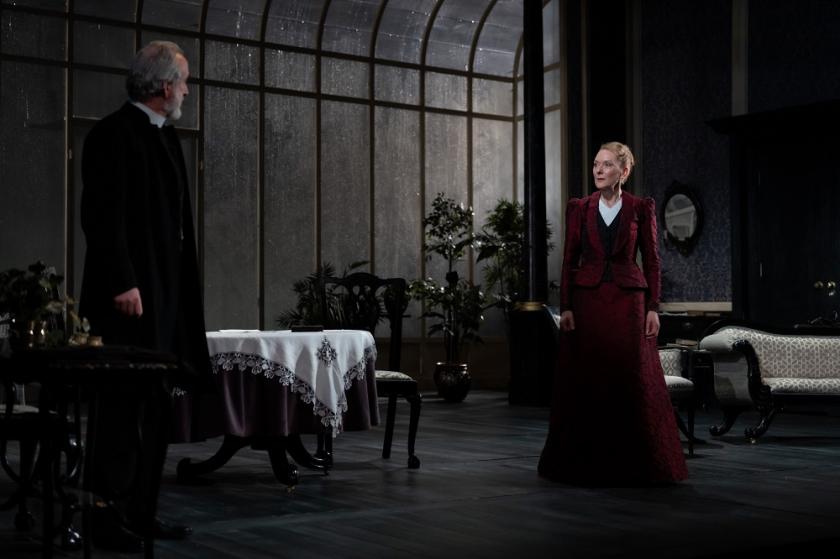 How ruthlessly Ibsen plots the unravelling of all attempts to wrap up sin and shame. Everyone's a victim here, even Declan Conlon's outwardy upstanding Pastor Manders, a victim of his own religious rigidity and of his naive wish to believe good of people. The real fascination lies in Mrs Alving's moral mess, how she and others perceive her attempts to stand by a libidinous husband she hated when he was alive. Alving senior is the ghost we never really get to know, the focal point of the drama. There's moral ambivalence, too, in Lorcan Cranitch's supposedly feckless father to Regina, the girl who's been brought up as a maid in the Alving household out of good intentions misapplied.