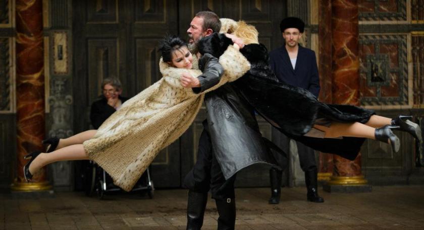 Part of Globe to Globe, it is a poignant play for a company of dissidents. Lear (Aleh Sidorchik) wore a radiant gauntlet, which he broke Cordelia’s nose with when she refused to sing the songs her sisters had. Goneril’s was an orgasmic version of "My Heart Belongs to Daddy", except she seemed to place her heart 18 inches south, while Regan gave us a preview of Belarus’s Eurovision entry. Both received their share of the kingdom as their father shovelled dirt from a pram into their uplifted skirts, so that clasping it to their stomachs they looked pregnant.