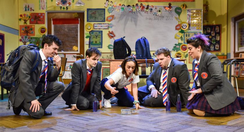 If ambition were all, Groan Ups would get an A*. Marking the first of a very welcome three-show residency at the Vaudeville Theatre, this latest from the cheerfully unstoppable Mischief Theatre tethers the japery we have come to expect from the team behind The Play That Goes Wrong – mishaps aplenty, verbal hi-jinks – with a newfound interest in the human psyche. Think of an amalgam of, say, Alan Ayckbourn mixed with Feydeau, and you get somewhere near the landscape of a terrifically likable, if overlong, study of how we got here from there. Or how they got there, that is, as regards the five classmates whose lives are tracked over three decades across as many scenes.