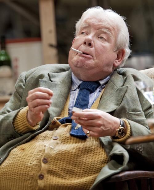This set-up is a masterstroke of creative procrastination, allowing for constant farcical double-takes. First we have the thoroughly enjoyable process of accustoming ourselves to Griffiths settling his vast bulk inside Bob Crowley's gross little set of a room in Christ Church, trying, without great conviction, to learn his lines and to play a grotesque with whom he has very little sympathy.