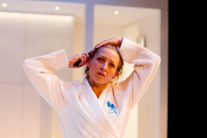 Posh hotels are good settings for drama. They look cool, feel alien and can rapidly acquire a sense of claustrophobic intensity. Most importantly, in real life they feel like stage sets. Playwrights from Noël Coward (Private Lives) to Sarah Kane (Blasted) have set their work in luxury hotels, so Polly Stenham’s latest play, her first for the National Theatre (and performed in the small studio space), follows in some large footsteps. But she brings her very own in-yer-face style to the party.
