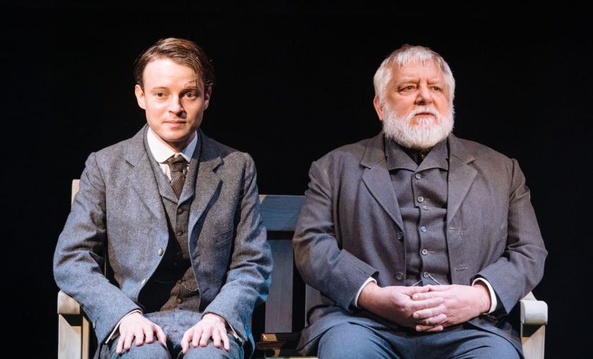 The rest of the large cast feature some good performances: the best by far is Matthew Tennyson as the young Housman, naïve, nervy and a little lost in the world. By contrast, Ben Lloyd-Hughes’s Jackson is hale, hearty and generous-spirited. Dickie Beau’s exiled Oscar Wilde (pictured above with Beale) is suitably serene, with a touch of acid, while Stephen Boxer’s Jowett is energetically funny. Alan Williams’s gravelly Charon is one of the show’s highpoints. This is an evening which has many joys and pleasures, although its masculine verbosity will not be to everyone’s taste.