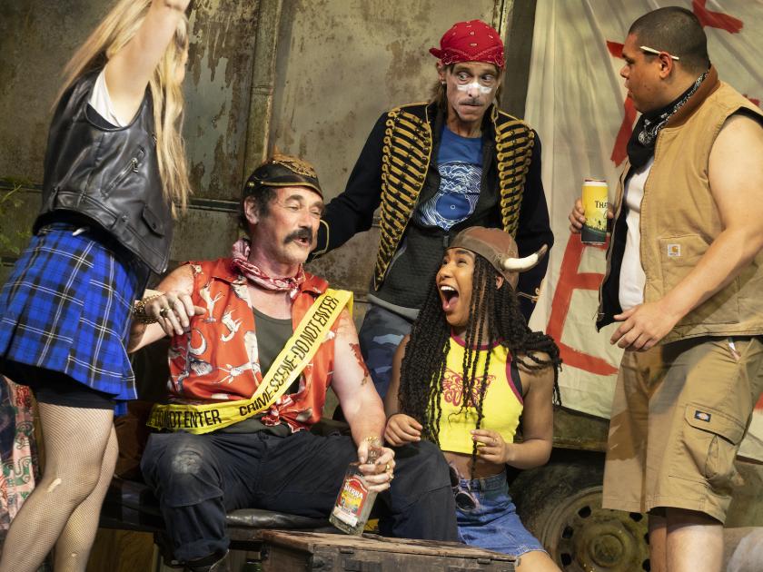 Fortified with these commanding performances, Rickson’s masterful staging presents a succession of exquisite stage pictures that keep growing in their emotional power. The ways his actors move through the space speak volumes about the characters’ different levels of comfort near Johnny. Guided by the play’s epic spirit, Rickson can wring out complex, grand shades of meaning out of even the simplest of exchanges. Especially when tropes about English folklore come to the fore, his cunning treatment of the text reaches new heights: his direction unearths the fantastical in the everyday, and vice versa.