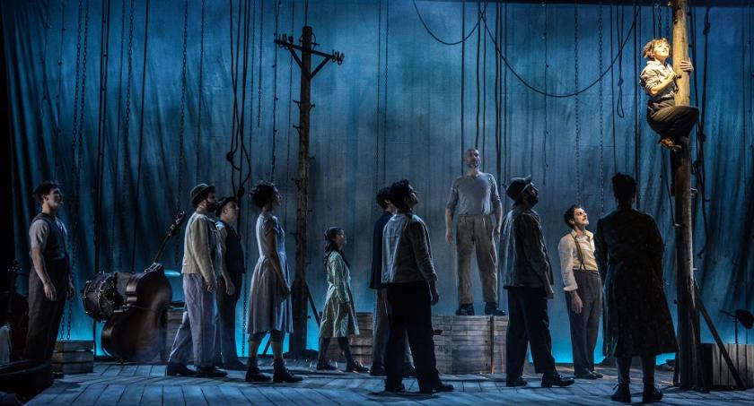 Nor does Katie Sykes’s set, variously lit by Aideen Malone, quite conjure the necessary atmosphere of the scenes along the road, despite the imaginative use of telegraph poles. At least the talented band of polyglot actors, musicians and actor-musicians do their stuff effectively in the set pieces, however generic. There's even a whiff of the showstopper favoured by musicals at the beginning of the second half, as Bart Soroczynski's Il Matto (pictured above) plays his accordion while weaving wonders on a monocycle. The dialogue in which he brings Gelsomina to face existential questions is the best in show, dramatically speaking; at last the amplified sound is quiet and there's a whiff of a drama rather than a mere divertissement.