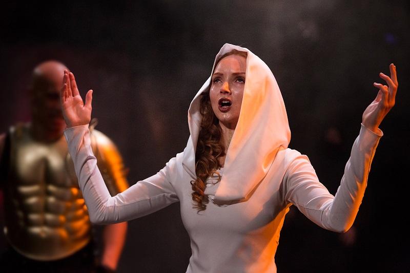 In order to accommodate the action, director Nick Bagnall has moved slightly away from the usual in-the-round format by having a large wooden ramp at one end to represent the city gates. At crucial moments, it opens up effectively to reveal a tunnel entrance to what looks like an underground car park. Hordes of spear-carrying warriors – well, 14 men and true – pour out at the height of battle.