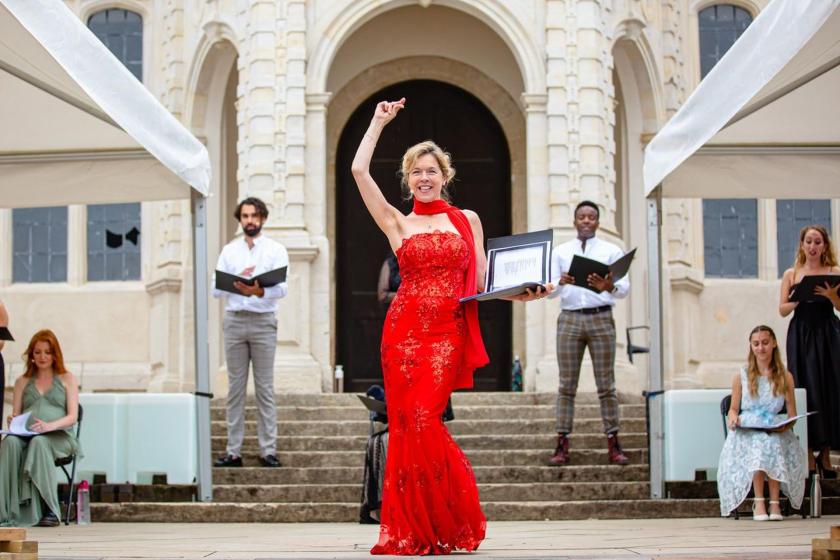 It was clear from the lowering skies at the early-evening start of the concert – the sixth show at this address during this strange summer – that anything could happen with the weather, and so it did: by the time Janie Dee, the event’s co-producer and its entirely winning Desirée Armfeldt, had reached that much-covered second-act signature song, the heavens had well and truly opened. Dee, undaunted, rose to the challenge as if inviting Sondheim at his wisest and most ruminative to do direct battle with nature. “Don’t you love farce?” she sang, emerging from beneath the twin canopies of Holland House to meet the full force of the rain head on. The lyric got a laugh from a crowd lost in admiration for Dee's stamina, all the while taking on new meaning in a Covid-aware staging that utilised the full cast required for the show but kept them at a necessary remove from one another. (No familial embrace at the end, for instance.)