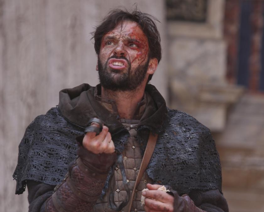 It's in Jacobean dress, but Best introduces some modern touches in the music (with a score by Olly Fox). The evening starts with a stirring drum-and-pipes number performed by the entire cast, and ends with a Scottish lament played on a fiddle by one of the Witches. The soundscape provides some eerie moments, and Best uses the theatre's galleries and Groundlings space to great effect.