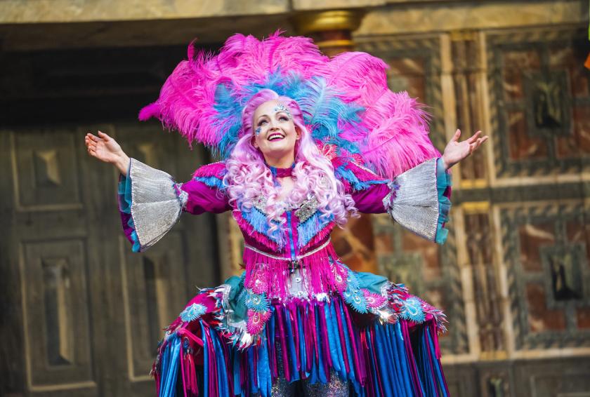 It’s one of the great innovations of this production that Puck appears as a flash-mob, with several members of the cast doubling up to help wreak anarchy - this is deployed to particularly good comedic effect at the play's conclusion, as the different Pucks compete to deliver the final words. The rude mechanicals remain a highlight, with Nadine Higgin’s blue-tressed disco-leader Peter Quince (pictured top) ably heading up the revelries, whether she’s leading rehearsals or stirring up the audience to sing ‘Caravan of Love’. In this diverting crowd, Rachel Hannah Clarke in particular makes her mark as a comedically timid Snug, who starts out as a cowardly lion but suddenly finds her roar once the spotlight is on her.