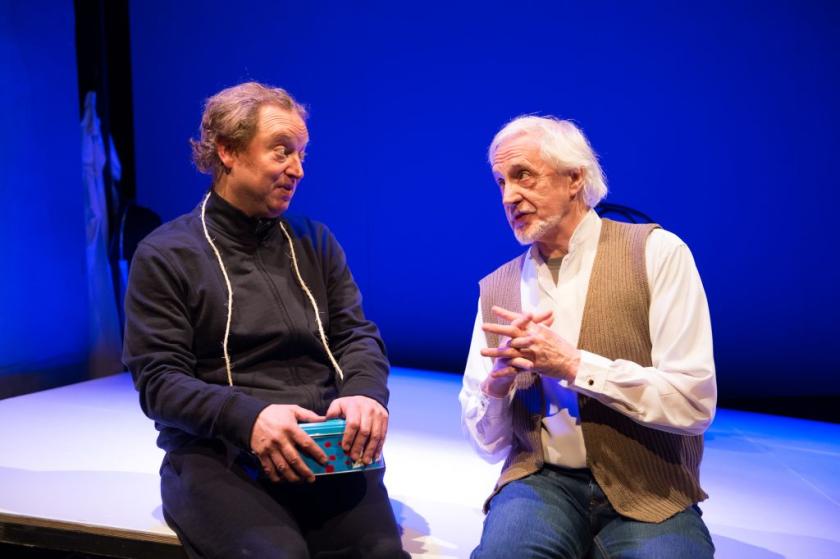 Bradford-born Petherbridge cuts a fine figure. Soft-voiced, elegant, he’s every inch the romantic actor with the profile of a superior gazelle, and as a mainstay of British theatre for over half a century, Petheridge’s CV charts many of its highlights. Chiefly known as a classical actor, having worked with Olivier at the first National Theatre at the Old Vic and been the original Guildenstern in Rosencrantz and Guildenstern Are Dead, Petherbridge all but feeds Tom Stoppard’s brilliant conceit into My Perfect Mind as he and Hunter sit on the side of the precariously tilting stage and chat and gossip like Stoppard’s two conspirators passing the time of day.