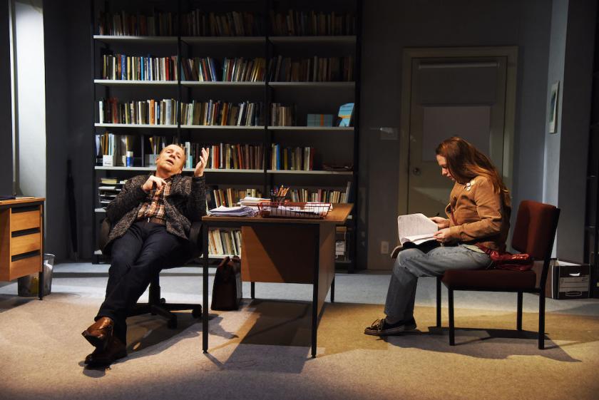 Like Amy Berryman’s Walden, which had a short West End run earlier this summer, the title Oleanna evokes a particular aspect of the American Dream – the idea of a perfect society. (“Oleanna” is a Norwegian folk song, popularised in English by Pete Seeger, and critical of composer Ole Bull’s utopian settlements in 1850s Pennsylvania.) For Mamet, the American university – and especially the politically correct students who have been confronting their trad-minded professors now for decades – is an equivalent site where progressive ideas have gone sour. Set in a academic’s study, his play is a two-hander about an escalating dispute between John, a college professor, and Carol, one of his students.
