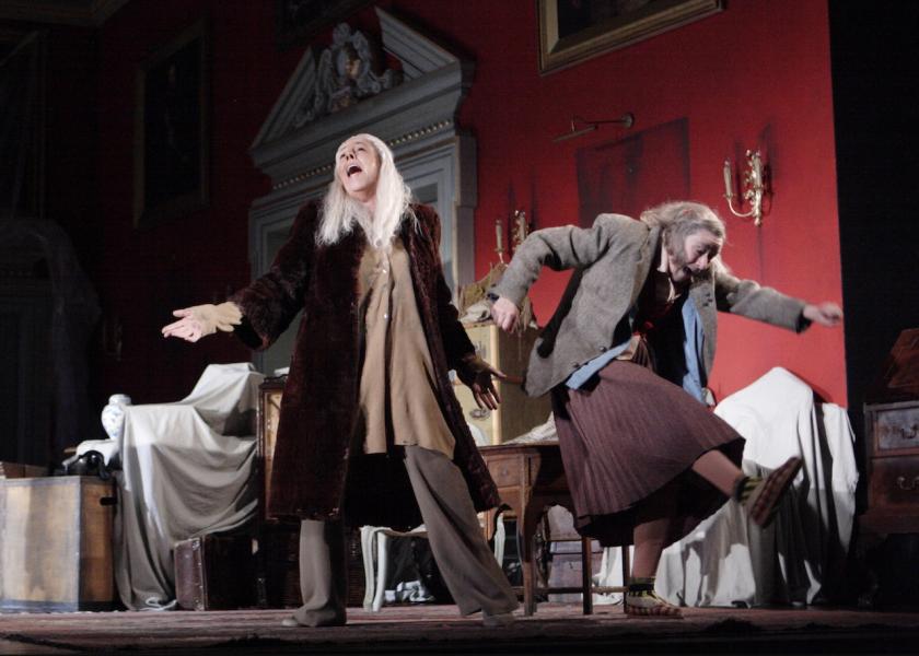 Frances de la Tour and Linda Bassett (pictured above right) are a delight as the two crones, playing snooty and mousey just like Robert Helpmann and Frederick Ashton's Ugly Sisters in Ashton’s ballet Cinderella. De la Tour, lofty in manner, and “Lofty” by nickname (yes!!!), has less richness in her script than the indiscreet, timorous Bassett, whose Iris pretty much steals the entire show; but as a duo they’re a treat, dancing to Petula Clark singing “Down Town” and walking tightropes of indiscretion and old-lady innuendo in their conversations.