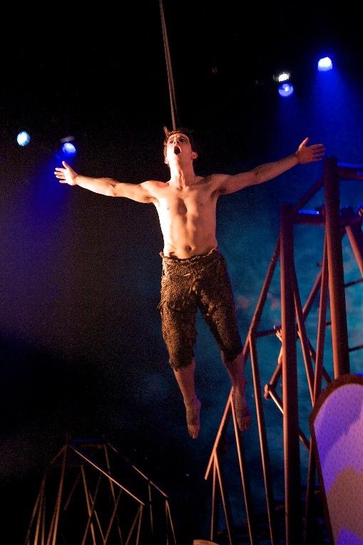 Naturalistic in its dialogue and – at times slightly ponderous – direction, the production makes glorious use of aerial acrobatics and technical effects, artlessly exposing their technical workings without distracting from the reality of the drama. Tinkerbell – here rendered by a moving flame – is treated similarly, a nod to the play’s Edwardian traditions but re-imagined as an altogether more dynamic and dangerous creation.