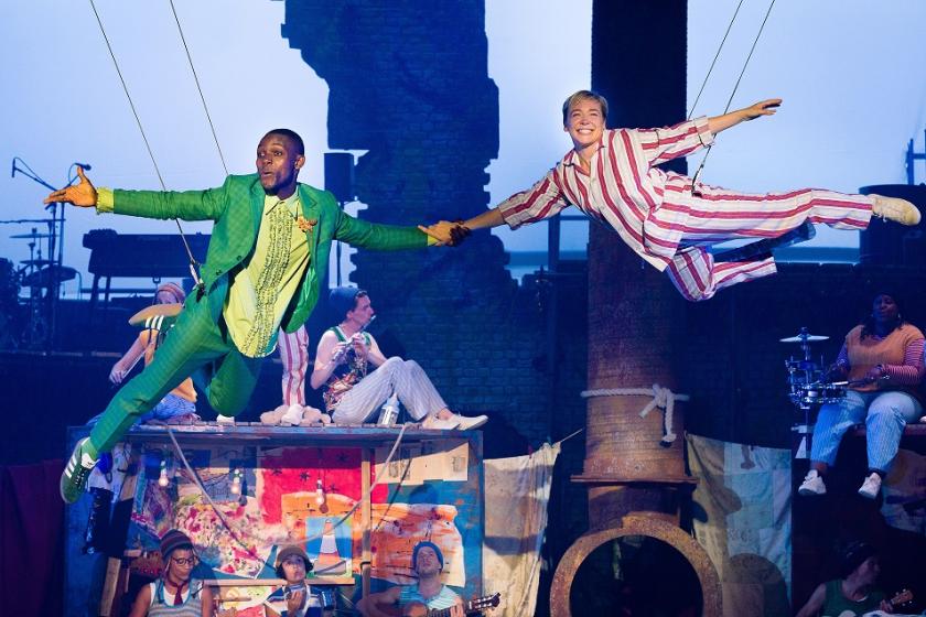 London’s Troubadour White City theatre has got off to a, literally, flying start. Sally Cookson‘s National Theatre-Bristol Old Vic adaptation of JM Barrie’s classic makes an exuberant comeback at this new venue, whose technical possibilities allow for some genuine thrills, not least when its hero soars high over the auditorium. Such standout moments of spectacle are backed up by a bravado performance that overflows with energy, keeping a youthful ensemble of some two dozen nimble from start to finish.