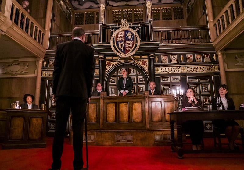 The result is a fascinating mixture, both more and less than a play, a "verbatim" account which daringly offers members of the audience the opportunity to act as jurors. The actual trial was held in the great hall of Winchester Castle, during an outbreak of plague in London. The Globe's production, first seen in its original location on the anniversary earlier this month, now arrives - all-too-briefly - at the Sam Wanamaker Playhouse, which, despite its wood-panelled, candle-lit warmth, acquires, in Jessica Worrall's design, the formality of a court room. The tone is set by Amanda Wright as an authoritative clerk of the court: we all stand obediently when she directs us to do so.