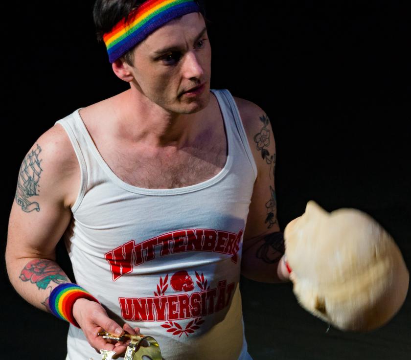 It’s a fine gesture by Dickie Beau to have heeded the Ghost’s plea and, in turn, be re-membering Charleson. But this re-membering involves quite a bit of business, moving all the body parts about and briefly creating a tableau of costumed mannequins from them for Charleson’s deathbed scene, after which he tidies them away. It’s not overly distracting and the film of the four heads holds our attention, but this business does seem like a large output of energy for a small result.