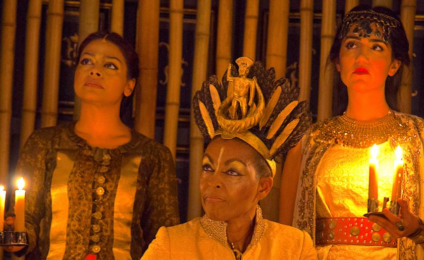 Aumerle (Ayesha Dharker), Richard II (Adjoa Andoh) and the Queen (Leila Farzad)