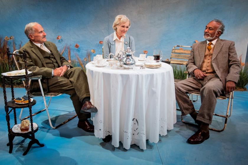 The setting is appropriately idyllic: a garden in rural Kent (the village’s name is Ramblestone, naturally), late summer 1932, the gentle thwocks of a game of tennis drifting over the fence. Eden complete with apples. Louie Whitemore’s set and Ali Hunter’s lighting work brilliantly together here to create this fragile softness. Both are Jermyn veterans, and it shows: at times the stage looks like a watercolour at dusk, at others it sharpens into striking backlit tableaux.