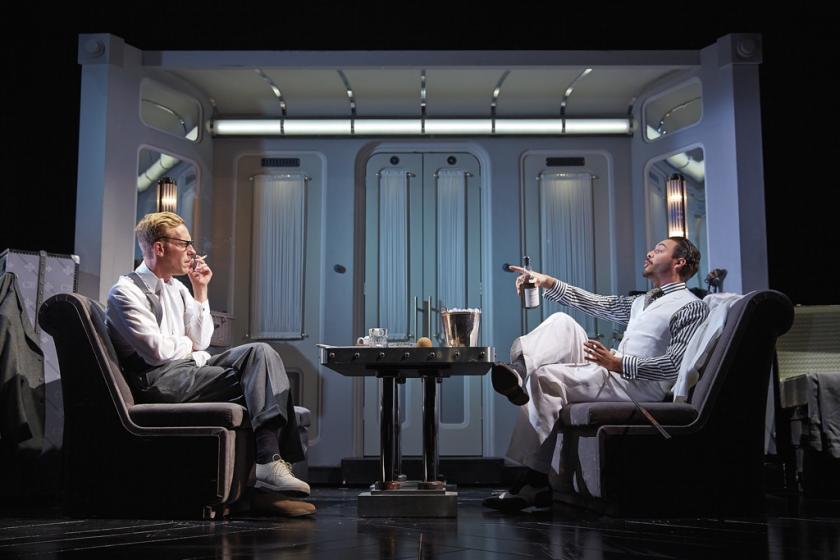 The stage allows Bruno (Jack Huston) and Guy (Laurence Fox) to meet in the train’s dining car, before switching with a quick revolve to Bruno’s private compartment. Here the host riles against his hated father, while his ears prick up at the mention of Guy’s estranged wife, impediment to both career and new love. “You can trust me, you’ll never see me again,” he declares jovially. Remember never to believe that one.