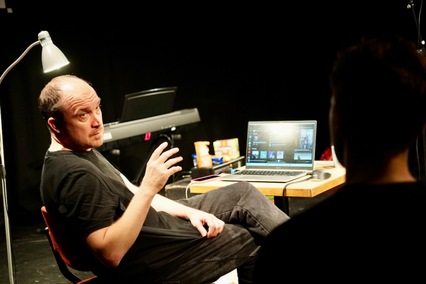 The leisurely pace of the show is relaxing, even if the material is bleak, with Thorpe’s conversational style being low-key and informative, a bit slack but also deeply sincere. There are moments of comic relief too. The design by Eleanor Field has a homely feel, like we’re in Thorpe’s living room and his taking of a cup of tea near the end of the piece feels very English. Co-creatives include Malaprop director Claire O’Reilly and Tony-Award-winning director Rachel Chavkin in a co-production by China Plate and Staatstheater Mainz. Arnim Friess’s lighting is good at disturbing audience complacency, making sure we can’t snuggly hide in the dark. The result is both participatory and quietly urgent.