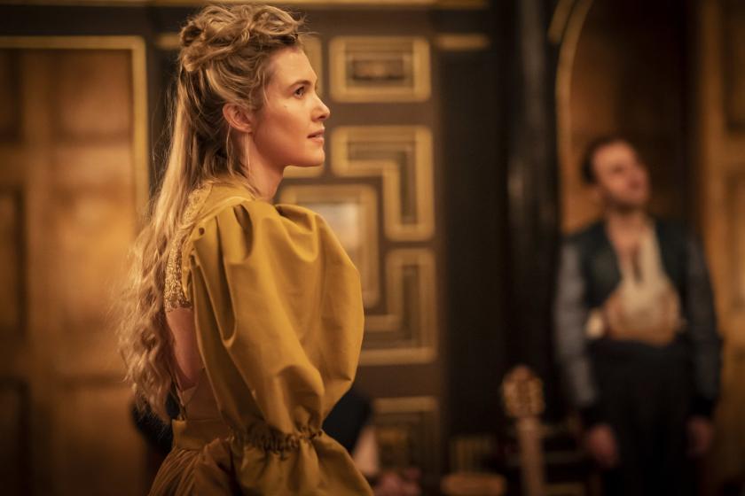 What we are supposed to make of Melissa Riggall’s pliant, blank-faced Katherina who, “sits as one new-risen from a dream” throughout I’m not sure. The horrors of the marital abuse hit harder against such a soft target, but then we arrive at her final monologue – delivered absolutely straight – and there’s nothing left to say. This is neither a tamed spirit nor a play-acting husband-and-wife conspiracy, it’s just words. Matters aren’t helped by the eruption of Michelle Terry (pictured above) into that final scene in the role of Hortension’s nameless wife. All the energy and passion that has been lacking is suddenly present as Terry is released from her minor role as servant-cum-director and allowed to do some acting.
