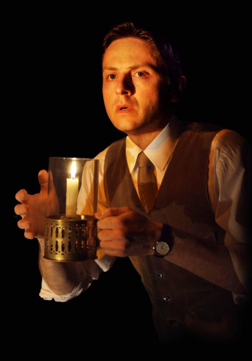 Now on the 29th partnership since the show’s opening, the weight of the play is carried by its two actors. With the easier task is Orlando Wells, in the role of our solicitor hero. Youthful and declamatory, he charts a convincing course from ambitious cosmopolitan cynic to broken-down believer. His performative delivery is in deliberate contrast to the fluid, naturalistic shiftings of Michael Mears, whose implausibly mobile features inhabit the other assorted roles of the drama. Most touching however are his appearances as the elderly Arthur Kipps, which have a fragility that lingers long in the mind.