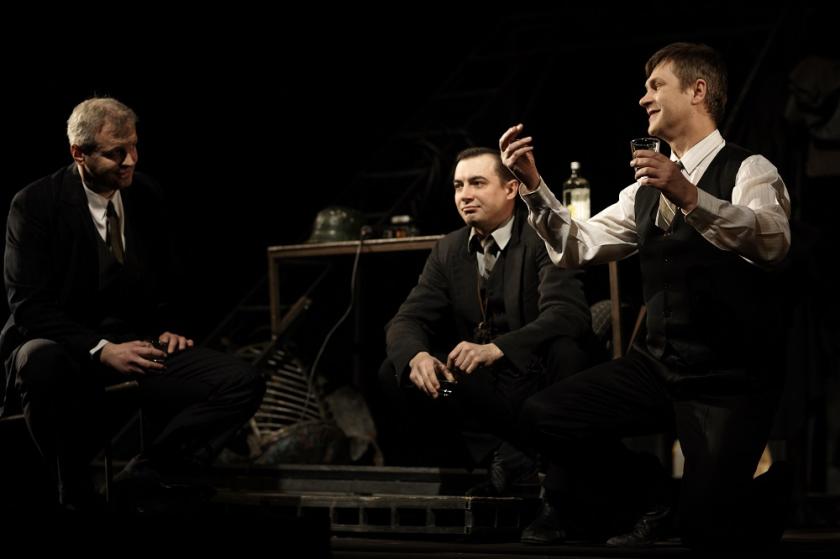 It’s easy to see why the novel was adapted for the stage by Volchek and Alexander Getman. There's not exactly an abundance of 1930s Russian drama looking back on the previous decade with honesty, and on this company residency in the Piccadilly Theatre the play should make a neat companion piece with the dashed hopes of Chekhov’s Three Sisters. There’s no attempt to shoehorn the book into a well-made play; countless short scenes are used to set up the mood and characters – established with admirable swiftness in the first ten minutes – with designer Pavel Parkhomenko’s appropriately shabby bits of set moved around as nimbly as if they were painted flats and Damir Ismagilov's lighting adding immensely to the atmosphere, a lesson in effective stagecraft. The sound collage, though its basis is dated-sounding synthesized music, assists the moodiness, too, until an ear-splitting ending which is the only obvious concession to new Russian vulgarity.