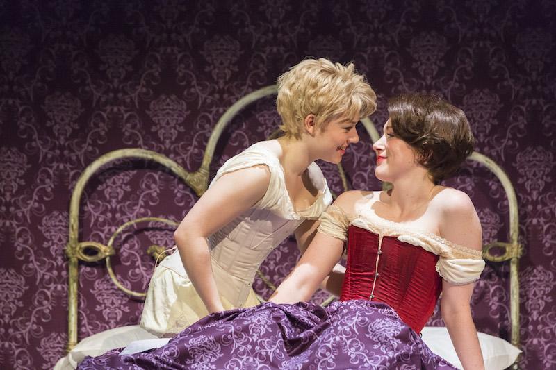 Like fellow spirited adventurers Moll Flanders and Nell Gwynn (the latter currently inhabiting the Globe), Nancy Astley (Sally Messham) rises from humble origins, selling oysters rather than oranges before making her name as a vaudevillian male impersonator or “masher” alongside all-consuming first love Kitty Butler (Laura Rogers, pictured below). Chameleonic Nan embodies multiple roles – cross-dressing rent boy, bruised and bruising plaything of socialite Diana (Kirsty Besterman), feminist activist – on the road to self-acceptance. There’s a dash of Moulin Rouge!, too, with Turner’s flamboyant use of contemporary pop songs (rearranged by Michael Bruce) – wittily deployed, if occasionally distracting.