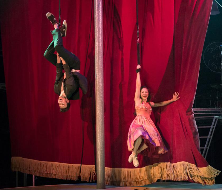 Wagner's Tristan Und Isolde is, of course, an inspiration and a record of the opera is put on a turntable at the start of the show, with the narrative then driven by the onstage band and songs performed by members of the company. With its live music, dance, circus skills, balloons and so much more, what follows is the wonderful synthesis of artforms Rice has become such a master of.