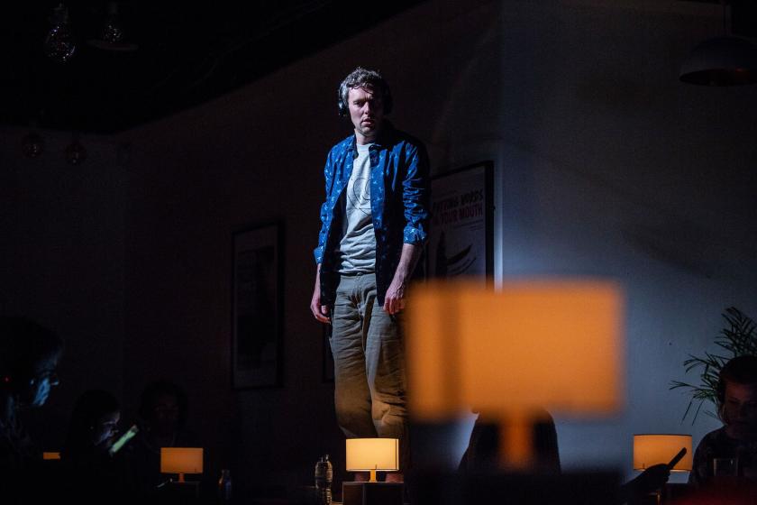 Weaving his way around the room as if embarked upon a prolonged exorcism, Terry chronicles not just loss but a digital landscape that tends sometimes cruelly to hang on to the living: each audience member gets a smartphone to go with the individual headphone, as if to remind us that one's social media imprint can endure long after the individual has gone. (Just think how often Facebook acts as an impromptu online in memoriam.) As a performer, O'Donovan's ready smile and warmth prove aptly seductive, whether he is proffering chai latte and a lemon poppyseed muffin as a defence against mortality or doing battle with the presence of Norah Jones in his dreams – or is it Sheryl Crow?